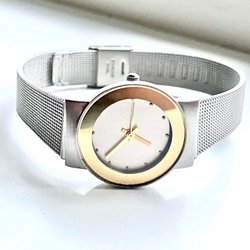 Säljer en elegant damklocka med ett stilrent utseende. Klockan har ett quartz urverk och ett matchande armband.