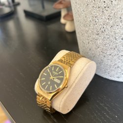 Klockan är vattentålig upp till 100 meter och har datumvisning.