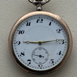 Ett äldre fint fickur med nyckeluppdragning, ungerar bra. Boetten har en diameter på 50,5 mm.