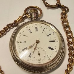 Klassiskt fickur med tillhörande kedja. Uret har en tydlig urtavla med arabiska eller romerska siffror. Perfekt som en stilfull accessoar.