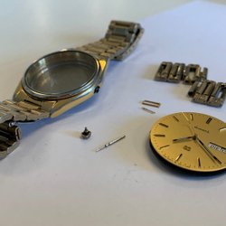 Fickur med "Solid" märkt på urverket. Skador på gängorna där boetten skruvas på, se sista bilden. Repa på glaset mellan klockan 2 och 3, se bild #3. Säljs som defekt/reparationsobjekt/reservdelar. Diameter 52,4 mm. Skickas väl paketerad. Föreslå gärna pris. Hör av dig om du har frågor eller vill ha fler bilder.
