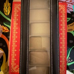 Svart klockbox med plats för 6 klockor. Perfekt för förvaring och skydd av dina klockor.