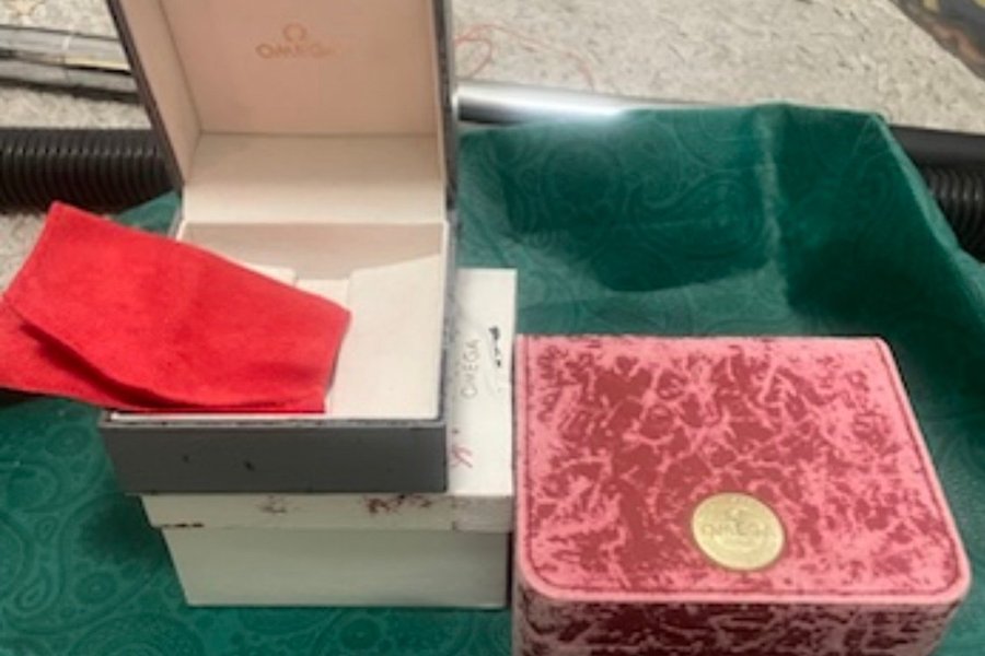 2 st Omega klocklåda . Perfekt för förvaring av din Omega-klocka. . Sliten.