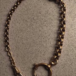 En fickur kedja i metall. Kedjan har en fästning i vardera änden.
