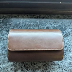 Brun klockfodral för tre klockor. Perfekt för förvaring eller resa.