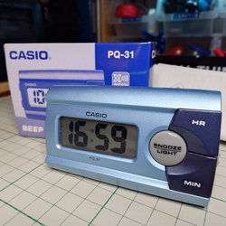 Klockradio från slutet av 90-talet. Radiodel med analog tuner för FM/AM, 59min sleep-timer, 9 min snooze och väckning till radio eller summerton. Backupbatteri 9V. Riktigt fint skick och fungerar perfekt. Bra mottagning och ljudkvalitet. Drivs via 230V. Endast apparat, inga övriga tillbehör.