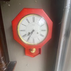 Klassisk väggklocka med pendel. Perfekt för att addera en touch av vintage till ditt hem.funkar