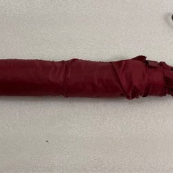 En röd väggklocka med silverfärgad ram. Urtavlan är röd med vita markeringar. Quartz urverk. Diameter 35cm