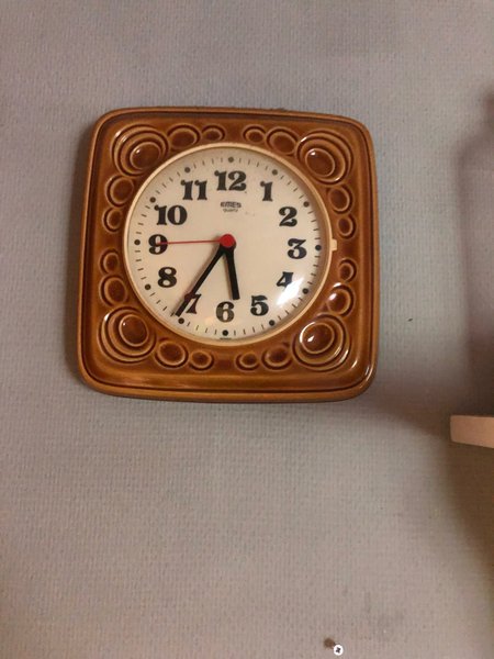 En retro väggklocka av märket EMES Quartz. Perfekt för den som älskar vintage inredning.
