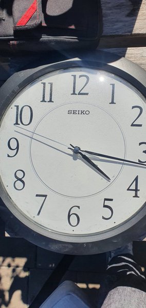 En klassisk Seiko väggklocka med svart ram och vit urtavla. Klockan är i gott skick och fungerar som den ska. Den har en kvartsrörelse och är batteridriven.