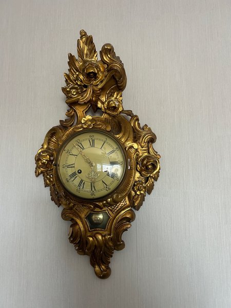 Väggklocka i förgylld snidad ram