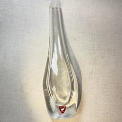 Tillverkad i studioglas av god kvalitet. Liknande objekt har producerats vid svenska glasbruk under 1900-talet, exempelvis Fåglaviks glasbruk.