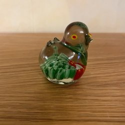 Set med fyra glasdjur figurer. Inkluderar en gul fisk, en bläckfisk, en haj (?) och en randig larv (?).