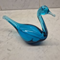 Svan i glas. Färg: bärnsten. Klistermärket är nött annars i fint skick