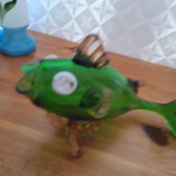 Dekorativ glasfisk. Blir skitsnygg om man belyser den underifrån på 3e bilden ovanifrån på 4e bilden