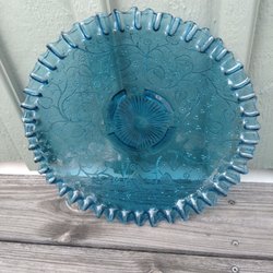 Fat i turkost pressglas, ca 25x23 cm.