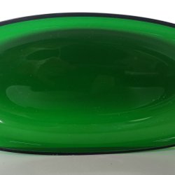 Ett runt tung glasfat med en upphöjd kant. Diameter 20.5cm.