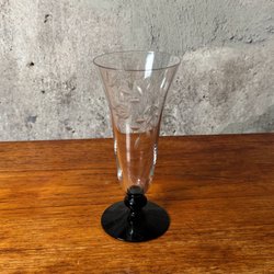 Fin cylindrisk blomvas med etsad dekor, och luftbubbla i botten precis som på Kosta Boda Pippi serien, om det är Kosta är osäkert då vare sig etikett eller stämpel finns.