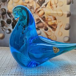 En vacker fågel i grönt konstglas , 10 cm hög i fint skick