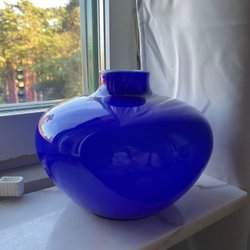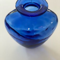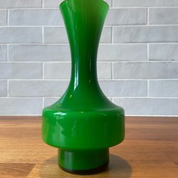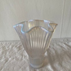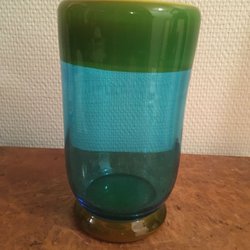 En fin vas med klar och gråtonad glasmassa. Vasen har ett mikroskopiskt nagg i mynning och mindre repor under botten. Ger ändå ett fint helhetsintryck.