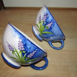 Det större är ca 14,5 cm högt, det mindre är ca 9 cm högt.