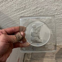 Glasblock med jaktmotiv