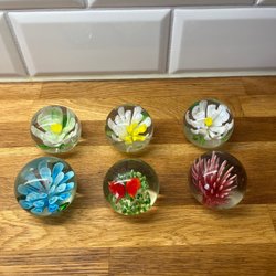Brevpress i glas med blomma. Det är i fin kondition, cirka 680gram.11cm hög