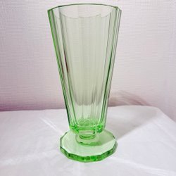 Grön vas i glas. Kan vara från Åsheda