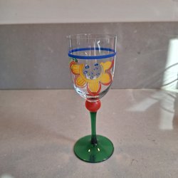 Stettglas dekorerat med handmålade röda tulpaner och en blå knopp på stammen. Ca 17 cm högt.