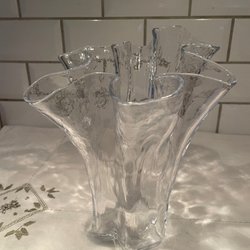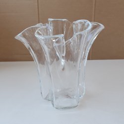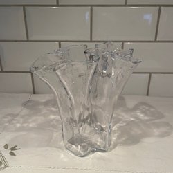 En elegant glasvas med en unik design som ger en tidlös estetik. Vasen är perfekt för att visa upp snittblommor eller som en dekorativ inredningsdetalj i hemmet.