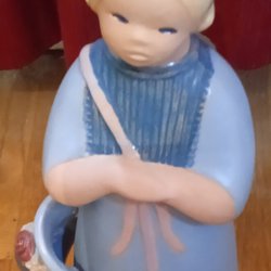 Tung vas i glas, Höjd c:a 21 cm, diameter (öppningen) 4 cm, omkrets c:a 31 cm, Bra skick, Avhämtning eller skickas med Schenker. Köparen betalar.