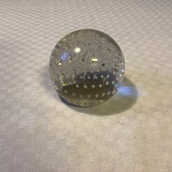En jättefin brevpress i glas, dekorerad med en rosa blomma o h trollsländor.