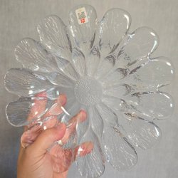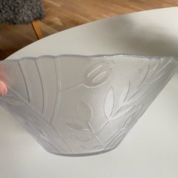 En vacker relativt stor glasskål med utsmyckningar.