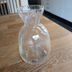 En Pyrex glasskål med en vågig kant. Den är 9 cm hög och 23 cm i diam det är inga nagg så den är i fint skick