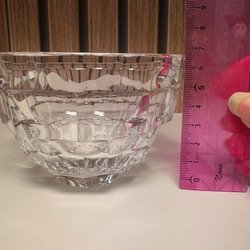 Glasskål med en diameter på 17 cm och en höjd på 8 cm. Skålen har en räfflad kant.