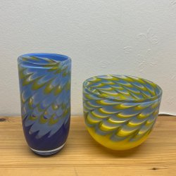 Sällsynt Bengt Orup grå glasvas med vita vertikala ränder, Johansfors Glasbruk.