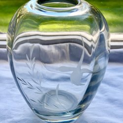 En vacker vas med motiv av tranor och blommor. Perfekt som dekoration i hemmet.