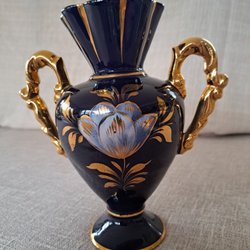 Blå vas med gulddetaljer