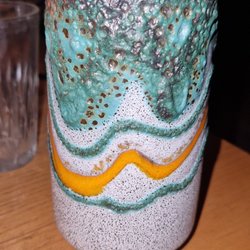Detta är en Scheurich-vas, troligen från 1960- eller 1970-talet, ett samlarobjekt märkt med 238 14 under