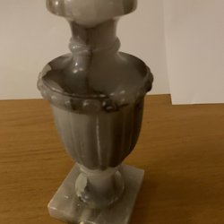 En vacker blå vas med guldfärgad detaljer. Perfekt för blommor eller som en dekorativ inredningsdetalj.Höjd 14,5 cm tjock 8-12 cm , kan hämtas i Vetlanda med