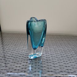 En fin vas i glas med ett vackert motiv av ett djurkontur och växter. Glaset har repor samt viss matthet finns.
