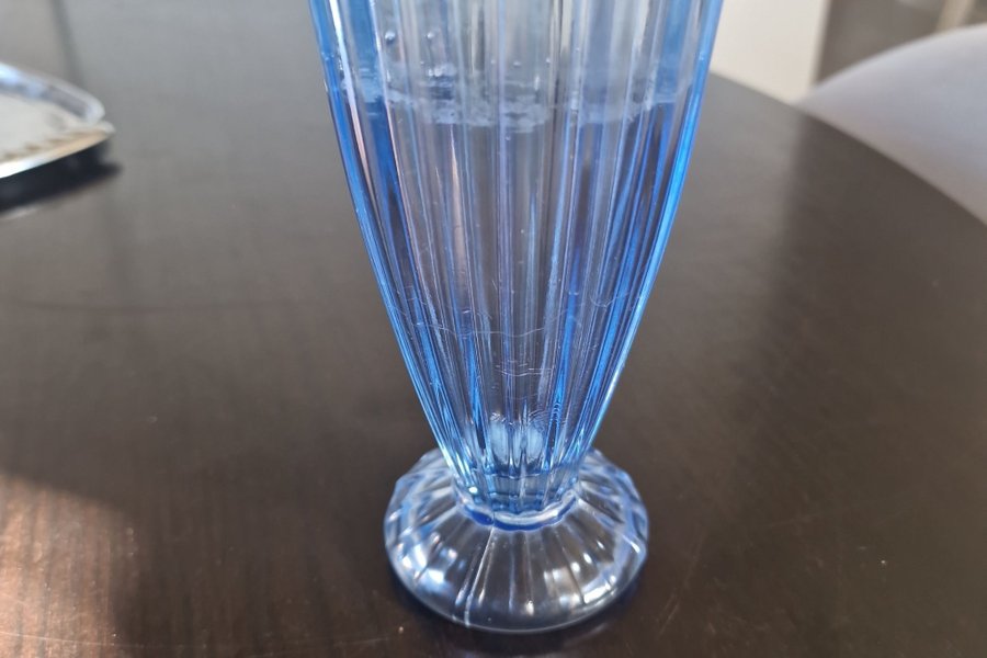 En blå Art Deco vas.Troligen 1940-1950 talet
