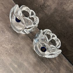 Två glas med en unik textur som liknar bark. Glasen är transparenta och har en oregelbunden form, vilket ger dem ett rustikt utseende.