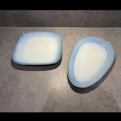 Fint bruksskick, ytliga repor, ett nagg i mitten av ena framsidan. Kalkavlagring i botten.