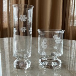 Blomvas i klarglas med dekorativt blommönster.