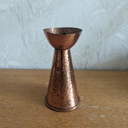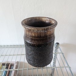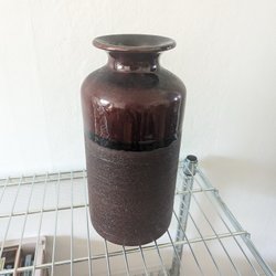 En fin vas i glas. Höjden är ca 21 cm, diametern upptill är ca 8 cm och diametern nedtill är ca 9 cm.
