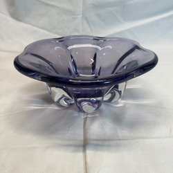 Vacker blå glasvas från Orrefors. Höjd: ca 20 cm. Största diameter: ca 21 cm.