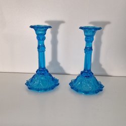 Ljusstake i blått glas.