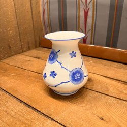Vacker äldre munblåst vas i blågrå glasmassa