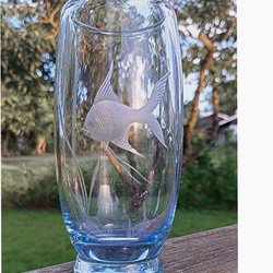 Objekt/Object: Vacker äldre munblåst vas i blågrå glasmassa
